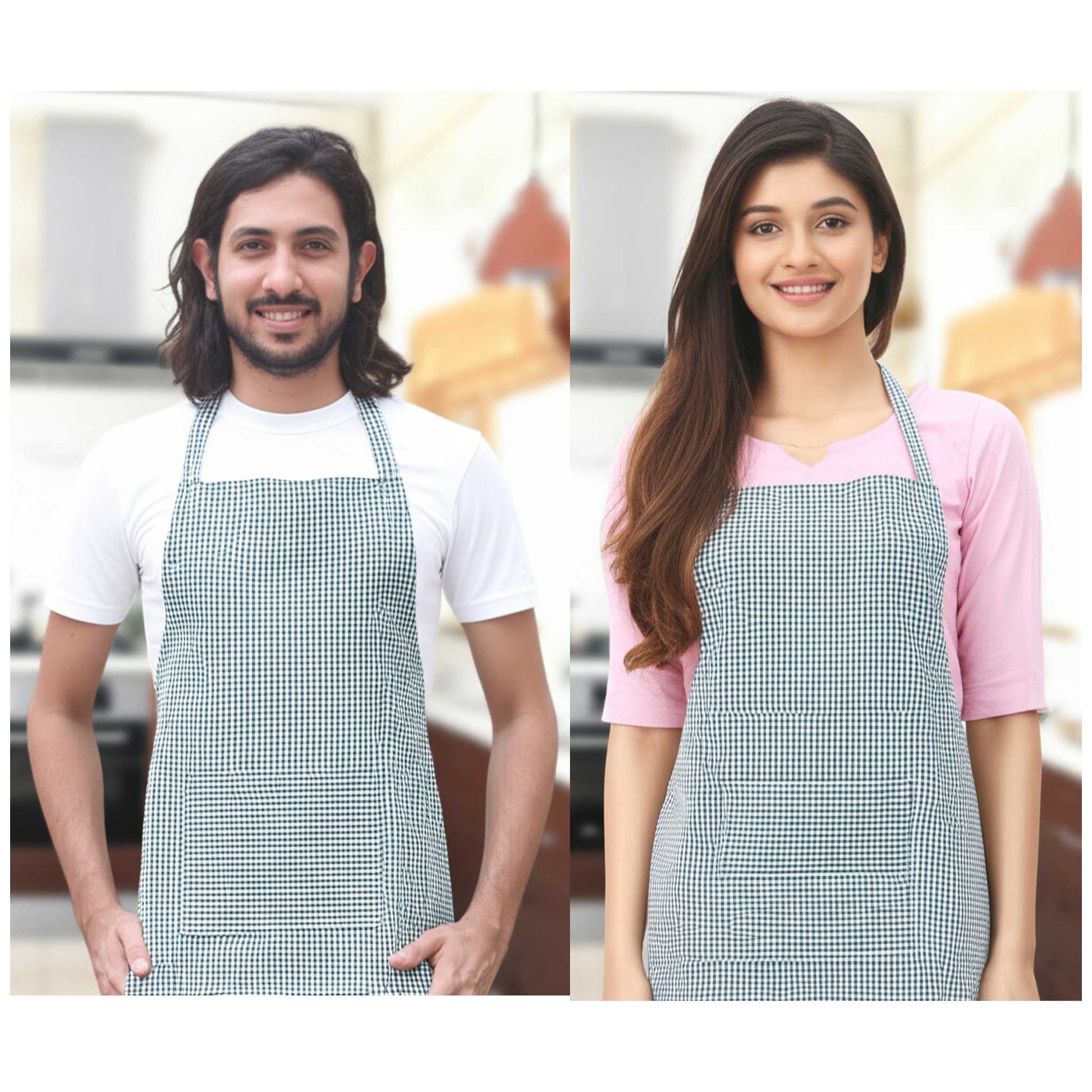 Adults Classic Small Check Cotton Apron with Adjustable Straps