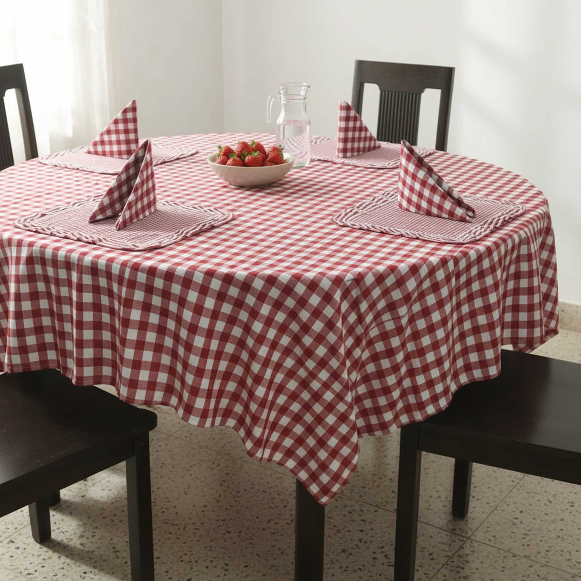 Add timeless charm to your dining space with this polyester tablecloth. Designed in a classic check pattern, it offers durability, easy maintenance, and a neat drape. Ideal for everyday use, family meals, or casual gatherings. Fits square tables and outing picnic perfectly