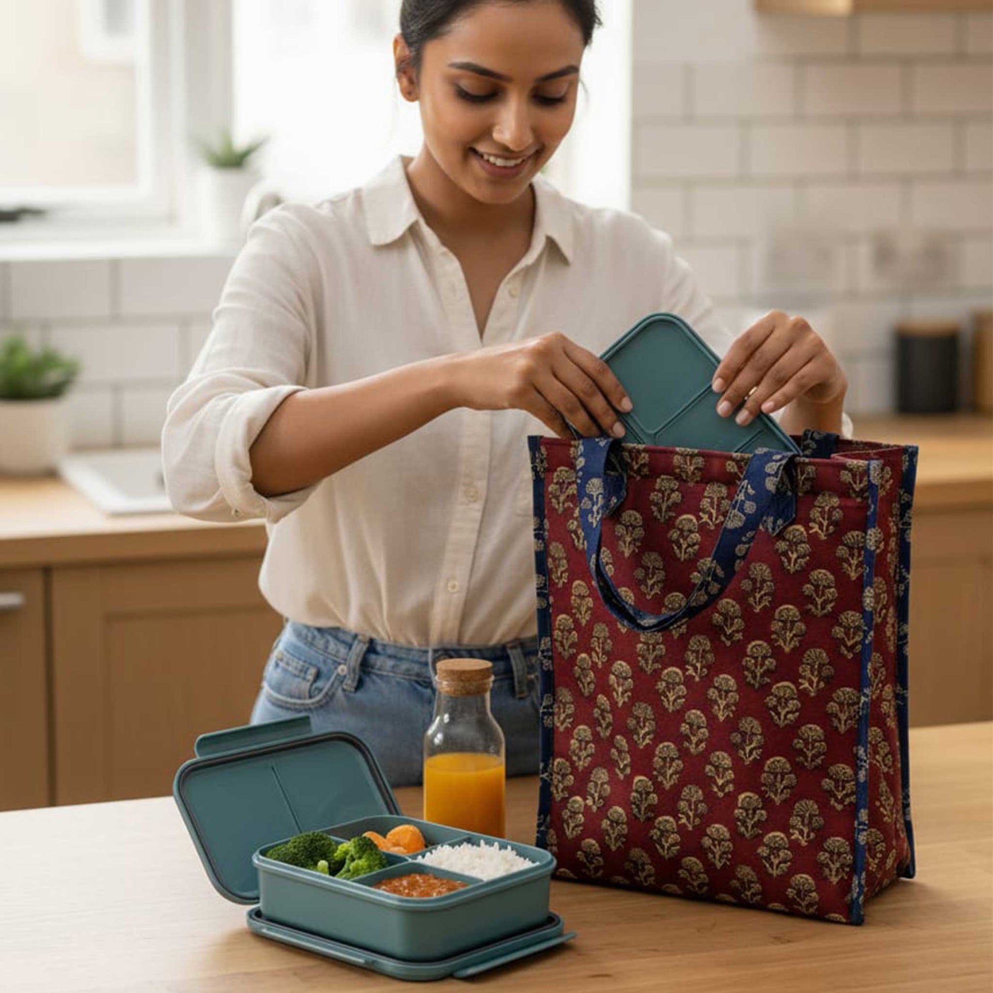 Insulated Aluminium Foil Hot & Cold Lunch Bag | Multipurpose Travel Tiffin Bag for Office, School & Outdoor Use