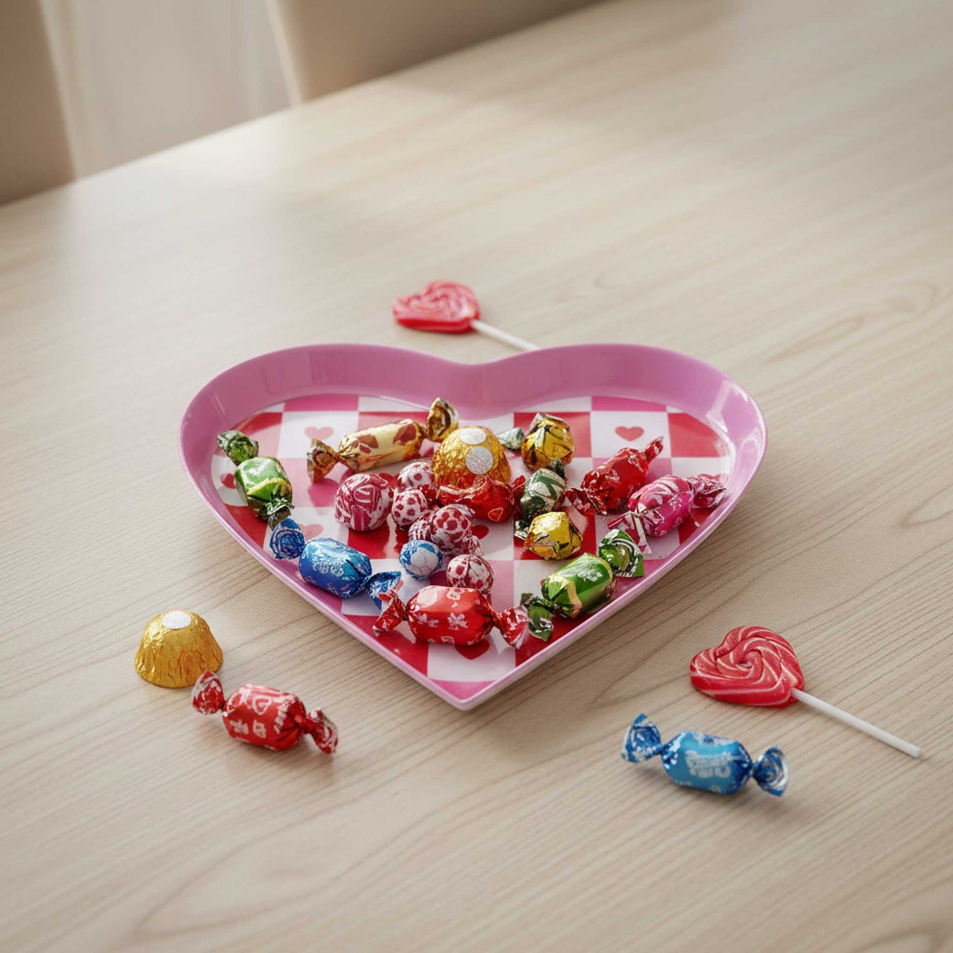 Romantic heart-shaped trinket tray handcrafted in metal. Perfect for organizing jewelry, rings, keys, or candies. Features a love-inspired design that adds charm to bedrooms or living spaces. Ideal for Valentine’s Day, festive gifting, or special occasions.